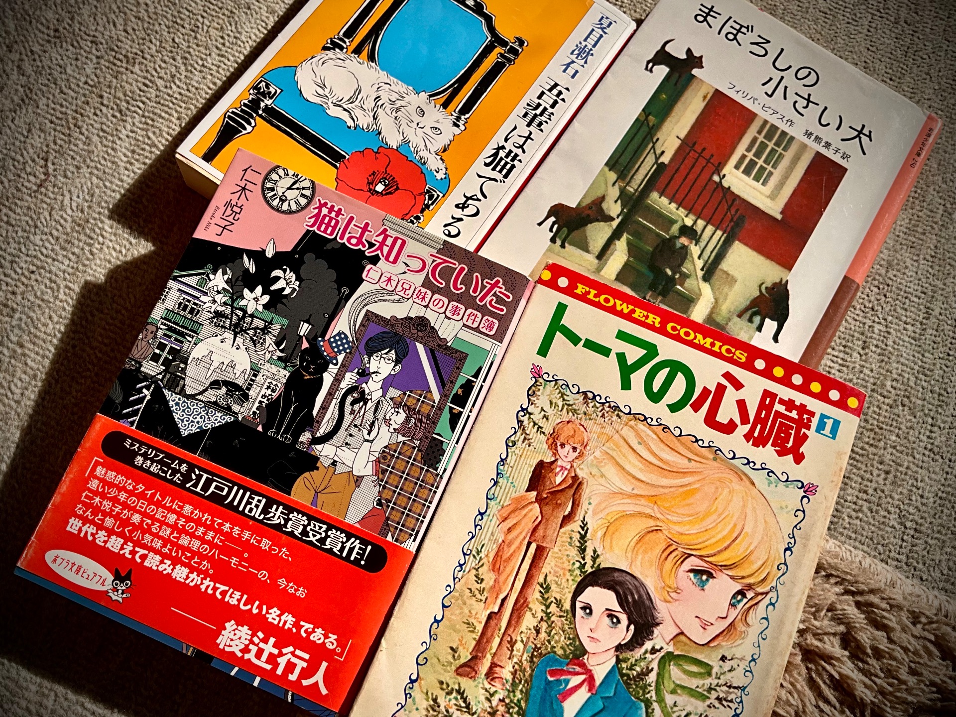 今年も今まで読んだことのない本や知っているつもりでいた本を読むことにチャレンジしました(読むペースが遅いのでそんなに数は多くないのですが)。夏目漱石の「吾輩は猫である」は、知っているつもりでしたが読み終えて全然知らなかったことに気づきました。猫が淡々とクールで語る描写が心地よかった。そのほか、猫つながりで読んだ仁木悦子の「猫は知っていた」。爽やかな作風で戦後の女流推理作家の先駆けとなったひとです。慈悲力が高いのに重くならずライトで読みやすかったので何冊でも読めました。今は同じ動物つながりでフィリパピアスの「まぼろしの小さい犬」を読んでいます。とてもおもしろいのでわくわくしながら読んでます。